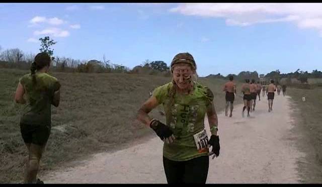 12 miles of obstacles and running takes awhile so to pass the time consider running backwards and singing like this young lady did. Good stuff!